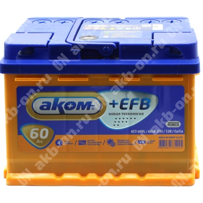 Аккумулятор автомобильный 12В 60Ач АКОМ +EFB прямой полярности – надежность и производительность в каждой детали!