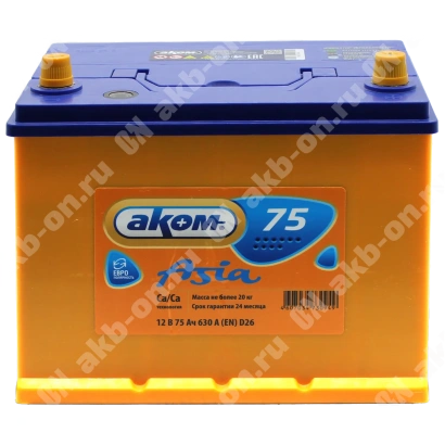 Аккумулятор автомобильный 12В 75Ач АКОМ Asia 80D26L обратной полярности проходит проверку и сопровождается гарантией, будьте уверены в надежности покупки. Не откладывайте — обеспечьте автомобиль долговечным источником энергии уже сегодня!