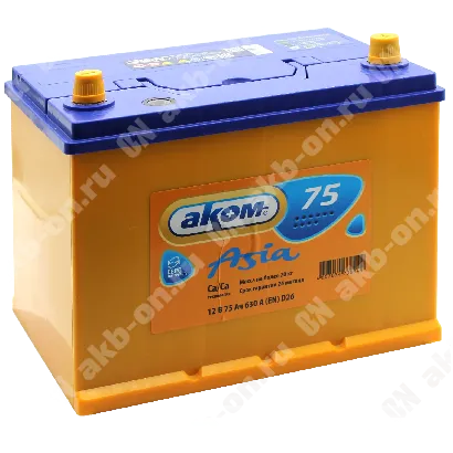 Аккумулятор автомобильный 12В 75Ач АКОМ Asia 80D26L обратной полярности – надежность и производительность в каждой детали!